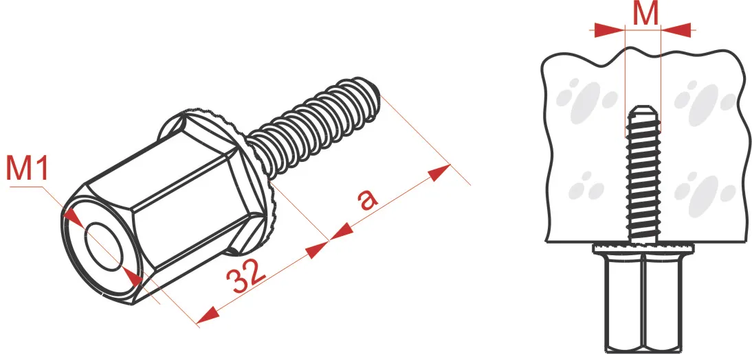 Анкерне кріплення в бетоні (без тріщин, пустотіла плита, тріщини). Дозволяє кріплення різьбового стрижня M8 або M10 (SKTO...) Матеріал S - Сталь, оцинкована методом Сендзіміра PN-EN 10346:2015-09
