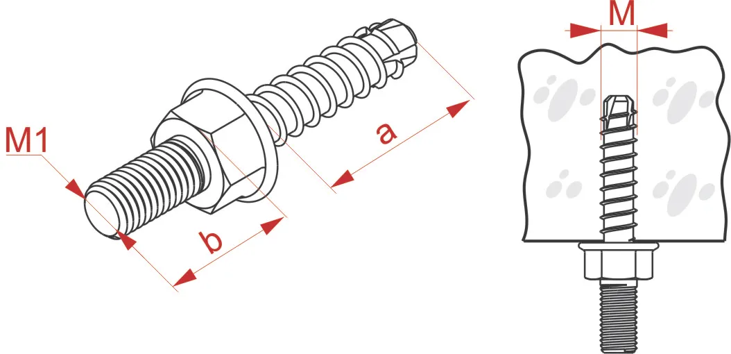 Анкерне кріплення в бетоні (без тріщин, пустотіла плита, з тріщинами). Дозволяє кріплення різьбового стрижня M8 або M10 (SKTO...) Матеріал S - Сталь, оцинкована методом Сендзіміра PN-EN 10346:2015-09