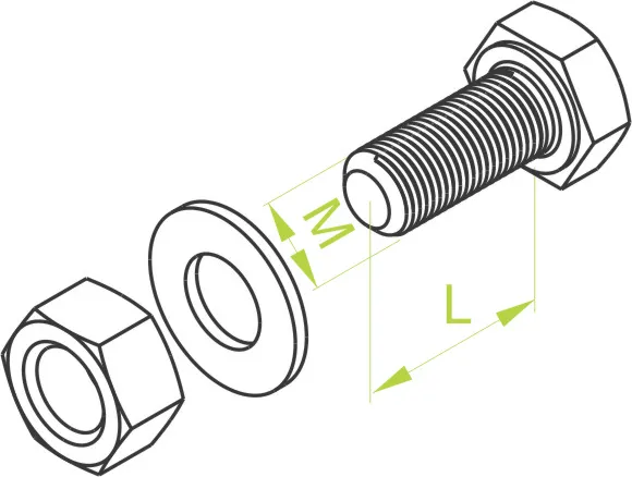 Підключення компонентів системи. Матеріал G - оцинкований Доступні варіанти оздоблення: F - гарячеоцинкована сталь PN-EN ISO 1461:2023-02 FP - оцинкований методом цинкової стружки PN-EN ISO 10683:2018-11 E - нержавіюча сталь Додаткова інформація – Болт класу міцності 5.8 – розмір згідно з DIN 933