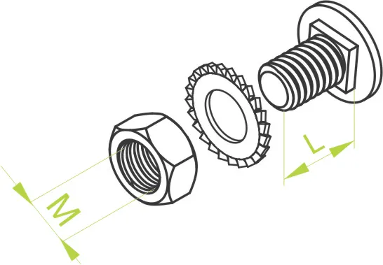 Підключення компонентів системи. Матеріал G - оцинкований Доступні варіанти оздоблення: FP - оцинкований методом цинкової стружки PN-EN ISO 10683:2018-11 E - нержавіюча сталь Додаткова інформація СТАЛЬ МАРКИ 8.8
