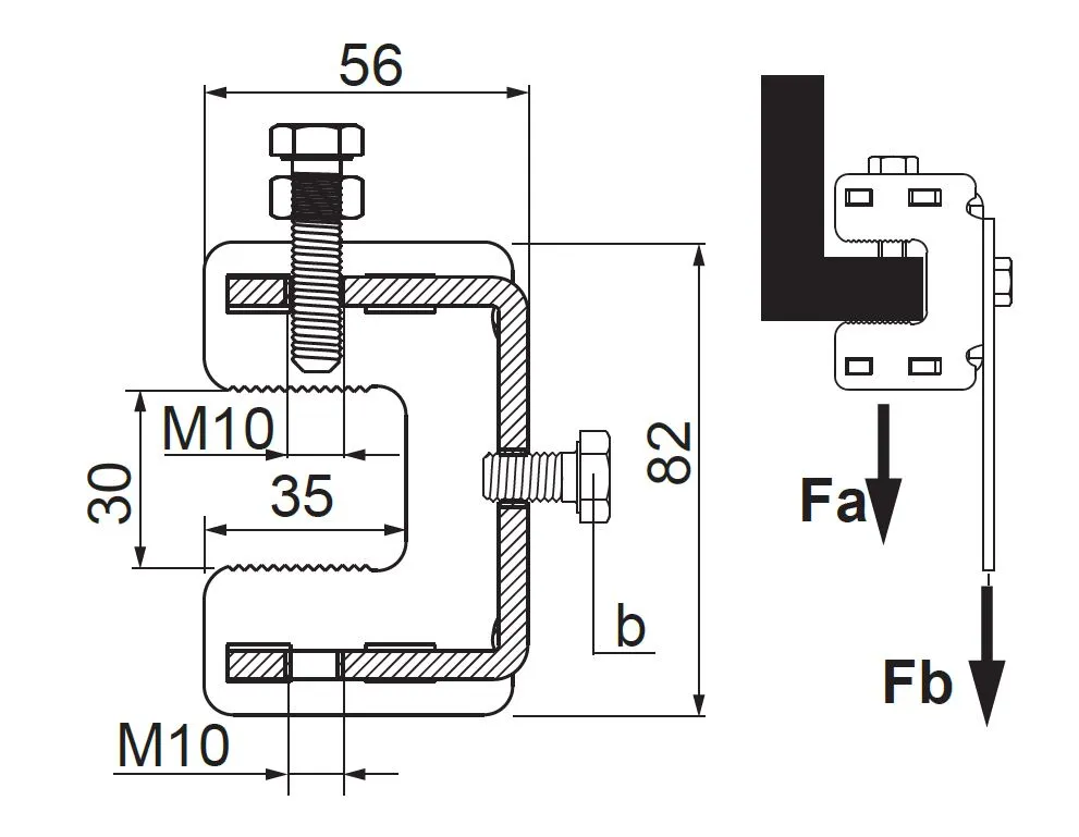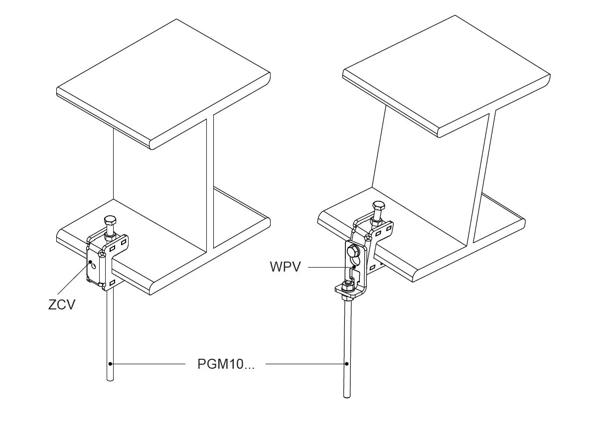 – Затискач ZCV має 3 різьбові отвори M10 для кріплення за допомогою болта