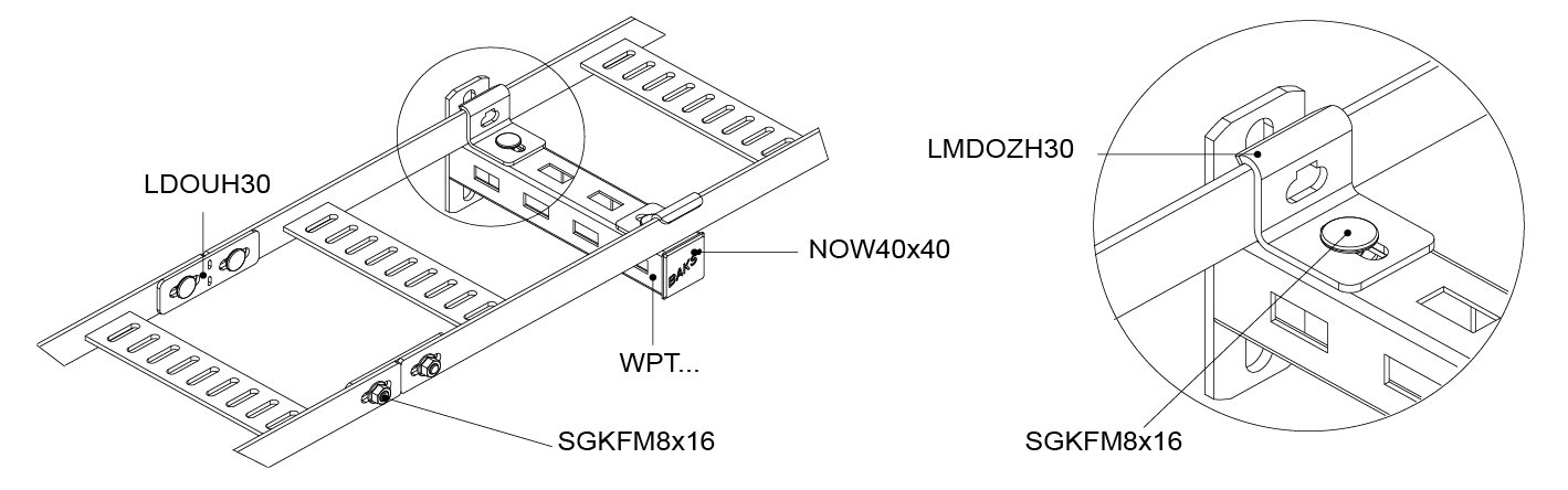 Кріплення драбин до конструкцій. Матеріал FP - оцинкований методом цинкової стружки PN-EN ISO 10683:2018-11 Доступні варіанти оздоблення: E - нержавіюча сталь