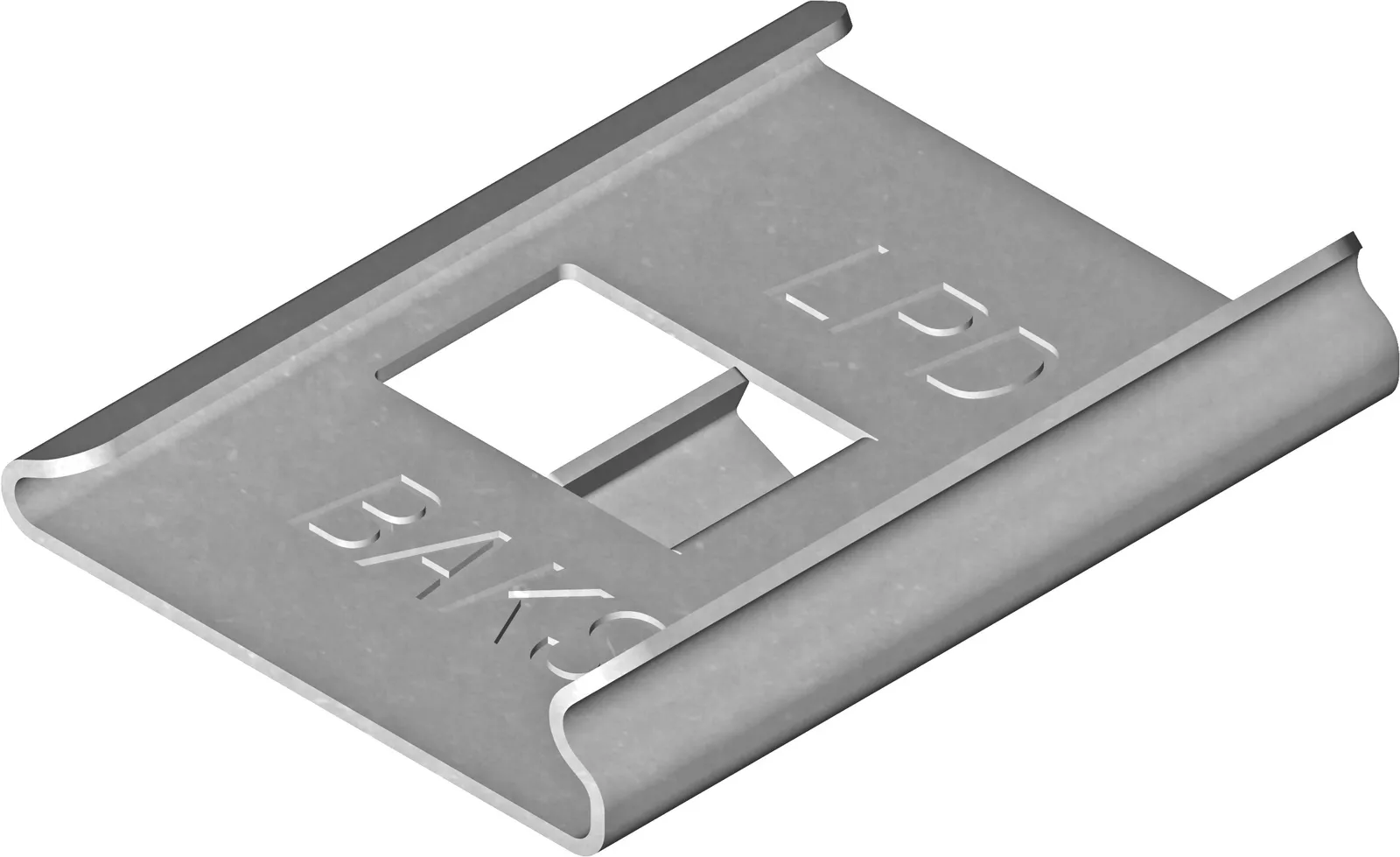 Вирівнювання нижніх країв з'єднанихбар'єрних смуг (захист кабелів відпошкодження при протягуванні) і фіксація до лотка.Підходить для всіх типів, крім KB… та KG… Матеріал G - оцинкований Доступні покриття: FP - оцинкований методом цинкових пластівців PN-EN ISO 10683:2018-11