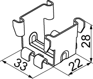 Безгвинтове з'єднання сітчастих лотків KDS35H35/3 та KSG35H35/3. Матеріал G - оцинкований Доступні варіанти виконання: FP - оцинкований методом цинкової пластівці PN-EN ISO 10683:2018-11 E - нержавіюча сталь L - фарбування в стандартний колір RAL