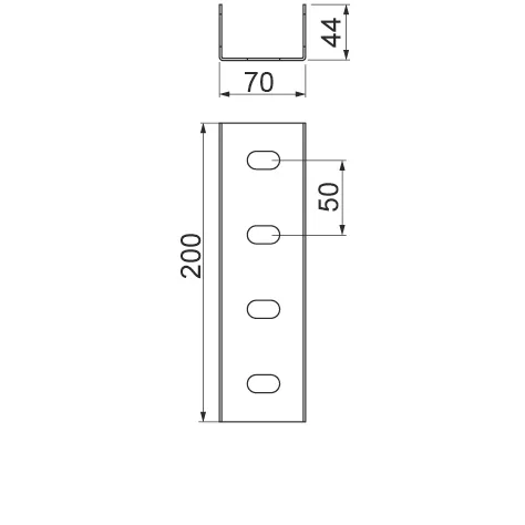 З'єднання каналів. Матеріал S - Сталь, оцинкована методом Сендзіміра PN-EN 10346:2015-09 Доступні варіанти оздоблення: L - фарбування у стандартний колір RAL Додаткова інформація – використовуйте болти SGKFM10x20 або SGFM10x20 для з'єднання профіля з роз'ємом