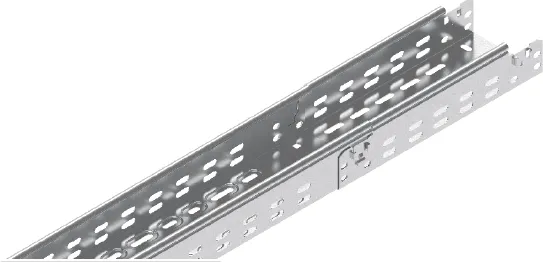 Безгвинтове подовження кабельної трасиз лотків KF... Матеріал S - оцинкована за методом Сендзіміра сталь PN-EN 10346:2015-09 Доступні варіанти обробки: L - фарбування в стандартний колір RAL