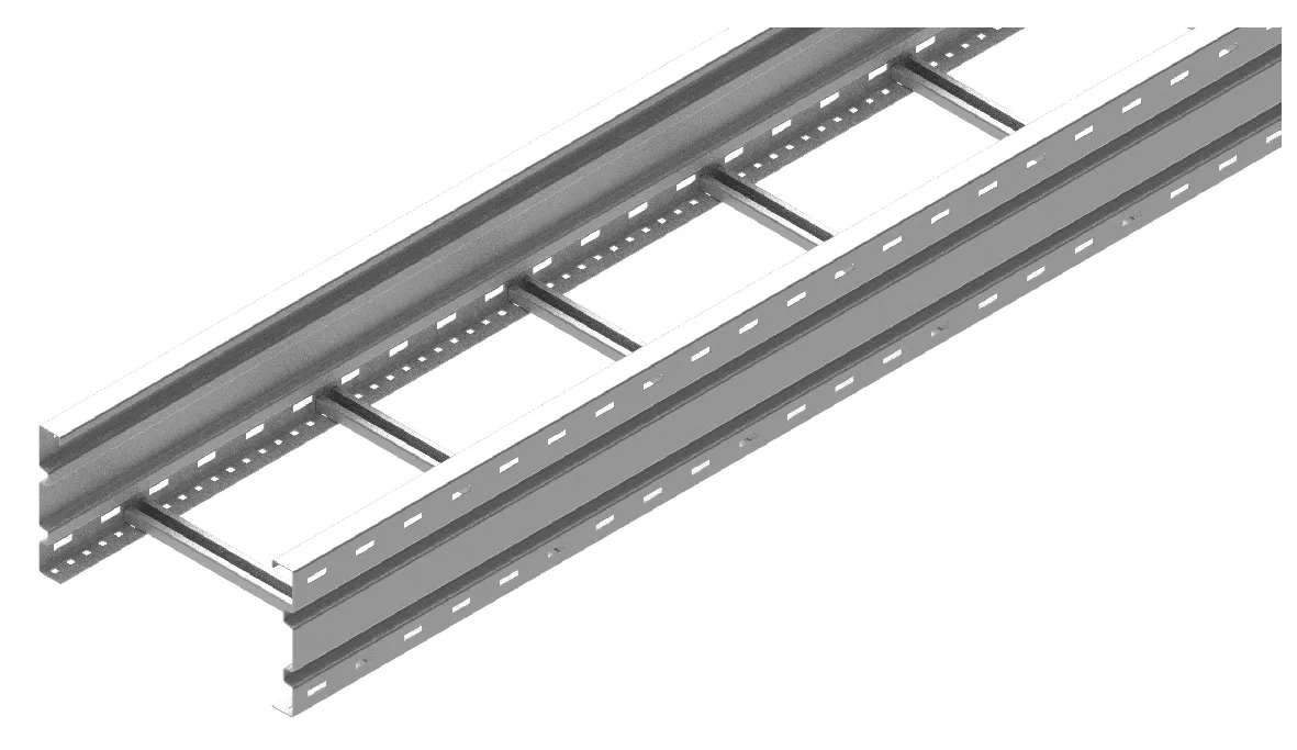 Прокладання кабельних трас у залах або приміщеннях з обмеженими опорними конструкціями. Висока міцність лотків дозволяє використовувати опори навіть кожні 12 м.