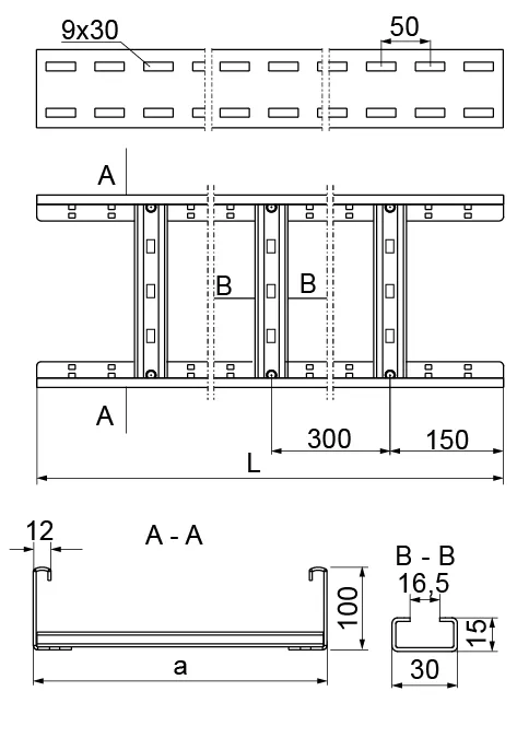 – драбина зі сходами, що підходить для монтажу кабельних затискачів UK/UKO... та UKP...