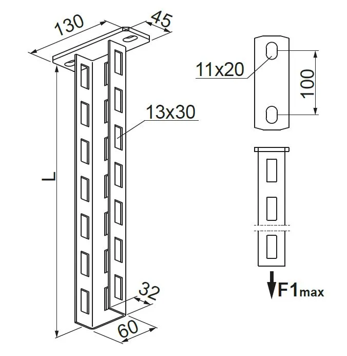 – діаграма нижче розрахована на одностороннє навантаження на кронштейн, для двостороннього навантаження кронштейна значення слід подвоїти (навантаження має бути рівномірним)