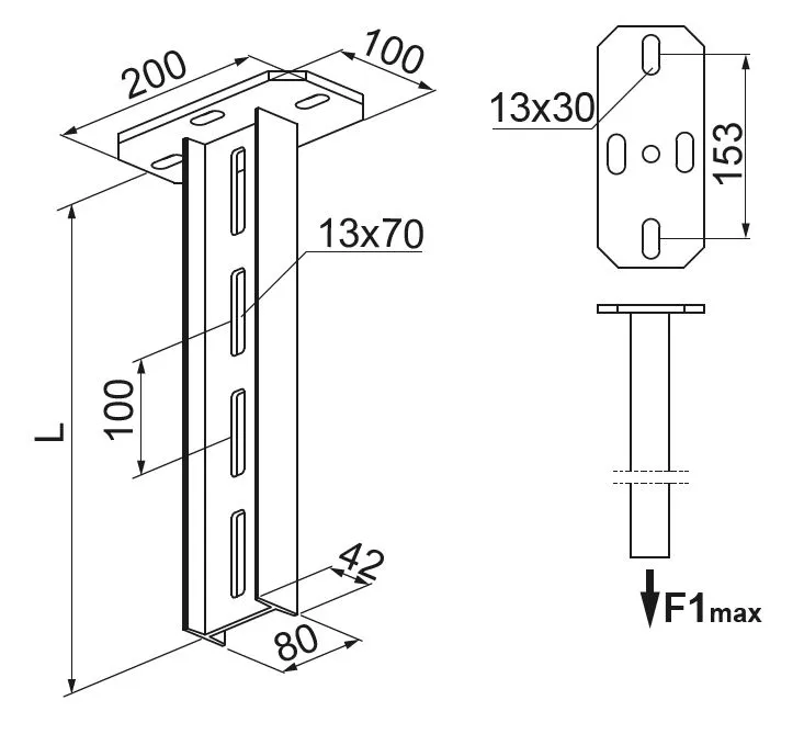 – діаграма нижче розрахована на одностороннє навантаження на кронштейн, для двостороннього навантаження кронштейна значення слід подвоїти (навантаження має бути рівномірним)