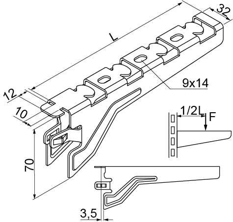 – безгвинтове кріплення до кронштейнів BAKS та профілів C..., CW... та CM... з отворами шириною 11-13 та довжиною 30-35 мм