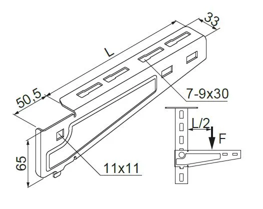 Підвішування кабельних трас. Настінний кронштейн для монтажу на опорному кронштейні WPCB... Матеріал S - Сталь, оцинкована методом Сендзіміра PN-EN 10346:2015-09 Доступні варіанти оздоблення: F - гарячеоцинкована сталь PN-EN ISO 1461:2023-02 E - нержавіюча сталь L - фарбування у стандартний колір RAL