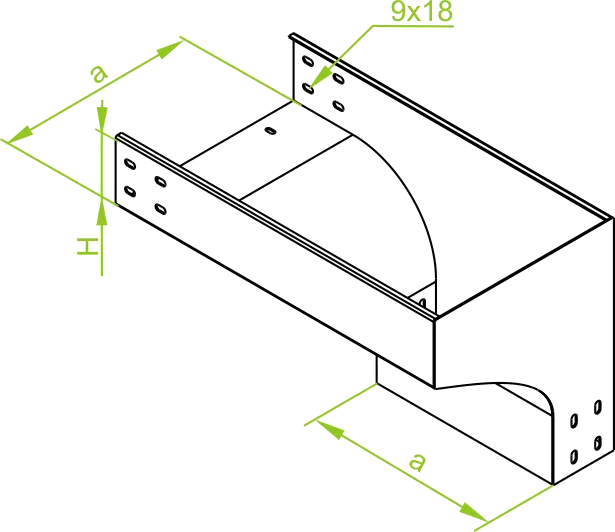 Відведення кабелю Матеріал F - гарячеоцинкована сталь PN-EN ISO 1461:2023-02 Доступні варіанти оздоблення: E - нержавіюча сталь L - фарбування у стандартний колір RAL Додаткова інформація Для з'єднання фітингів з кабельними лотками використовуйте прямі з'єднувачі LZC... та комплекти гвинтів SGKFM8x14 або SGFM8x14