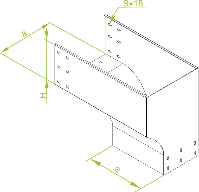 Зміна напрямку прокладання кабелю з горизонтальної струни на вертикальну. Матеріал F - гарячеоцинкована сталь PN-EN ISO 1461:2023-02 Доступні варіанти оздоблення: E - нержавіюча сталь L - фарбування у стандартний колір RAL Додаткова інформація – для підключення фітинга до лотка використовуйте з'єднувач LCC... або комплект з'єднувачів LZC... та болти SGKFM8x14 або SGFM8x14