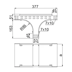 Розгалуження кабельної траси. Матеріал S - оцинкована за методом Сендзіміра сталь PN-EN 10346:2015-09 Доступні покриття: F - гаряче оцинкована сталь PN-EN ISO 1461:2023-02 E - нержавіюча сталь L - фарбування в стандартний колір RAL Додаткова інформація – кріплення за допомогою болтів SGKM6x12 або SGM6x12