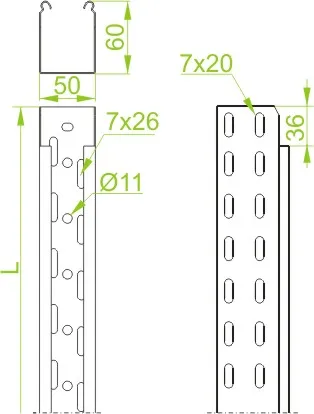Система підтримки кабельних лотків без з'єднувачів. Можливе з'єднання лотків за допомогою вставки одного лотка в інший і гайкового ключа з гвинтами. Ми рекомендуємо використовувати з'єднувачі тільки при великих навантаженнях.