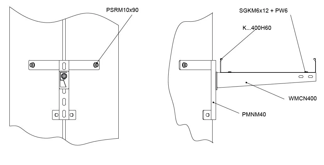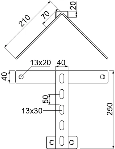 Кріплення стріл до дерев'яних стовпів. Матеріал F - гарячеоцинкована сталь PN-EN ISO 1461:2023-02 На запит: E - нержавіюча сталь L - фарбування у стандартній палітрі RAL