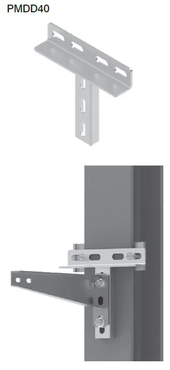 Кріплення важких стріл до сталевих та бетонних конструкцій. Матеріал F - гарячеоцинкована сталь PN-EN ISO 1461:2023-02 На запит: E - нержавіюча сталь L - фарбування у стандартній палітрі RAL