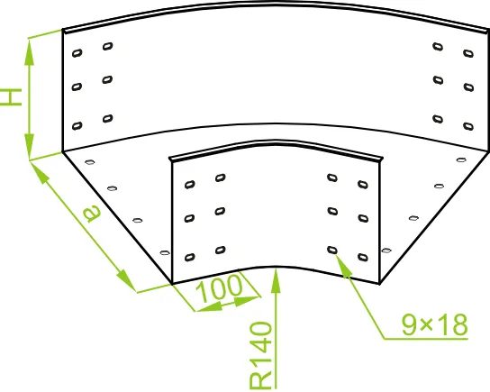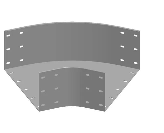 Зміна напрямку кабельної траси. Матеріал F - гарячеоцинкована сталь PN-EN ISO 1461:2023-02 Доступні варіанти оздоблення: E - нержавіюча сталь L - фарбування у стандартний колір RAL Додаткова інформація – для підключення фітинга до лотка використовуйте з'єднувач LCC... або комплект з'єднувачів LZC... та болти SGKFM8x14 або SGFM8x14