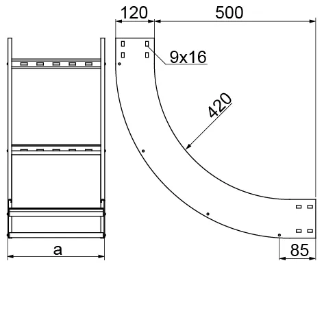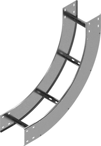 Зміна напрямку кабельної траси. Матеріал S - Сталь, оцинкована методом Сендзіміра PN-EN 10346:2015-09 Доступні варіанти оздоблення: F - гарячеоцинкована сталь PN-EN ISO 1461:2023-02 E - нержавіюча сталь L - фарбування у стандартний колір RAL Додаткова інформація – для кріплення використовуйте 4 з’єднувачі LDPH... або LDCH... та 32 комплекти болтів SGKM8x14 або SGM8x14