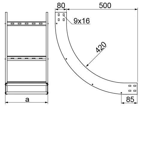 Зміна напрямку кабельної траси. Матеріал S - Сталь, оцинкована методом Сендзіміра PN-EN 10346:2015-09 Доступні варіанти оздоблення: F - гарячеоцинкована сталь PN-EN ISO 1461:2023-02 E - нержавіюча сталь L - фарбування у стандартний колір RAL Додаткова інформація – для кріплення використовуйте 4 з’єднувачі LDPH... або LDCH... та 32 комплекти болтів SGKM8x14 або SGM8x14