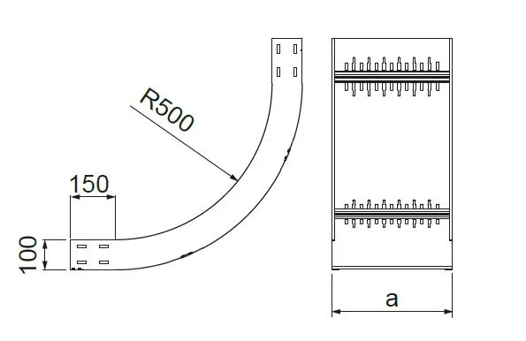 Зміна напрямку кабельної траси. Матеріал S - Сталь, оцинкована методом Сендзіміра PN-EN 10346:2015-09 Доступні варіанти оздоблення: F - гарячеоцинкована сталь PN-EN ISO 1461:2023-02 E - нержавіюча сталь L - фарбування у стандартний колір RAL Додаткова інформація – для з’єднання фітинга з лотком необхідно використовувати з’єднувачі фітингів LSSU... та болти SGKM8x16