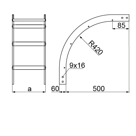 Зміна напрямку кабельної траси. Матеріал S - Сталь, оцинкована методом Сендзіміра PN-EN 10346:2015-09 Доступні варіанти оздоблення: F - гарячеоцинкована сталь PN-EN ISO 1461:2023-02 E - нержавіюча сталь L - фарбування у стандартний колір RAL Додаткова інформація – використовуйте 4 болти LDPH60 або LDC/LDOCH60 та 16 комплектів болтів SGKM8x14 або SGM8x14 для кріплення