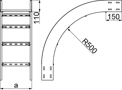 Зміна напрямку кабельної траси. Матеріал S - Сталь, оцинкована методом Сендзіміра PN-EN 10346:2015-09 Доступні варіанти оздоблення: F - гарячеоцинкована сталь PN-EN ISO 1461:2023-02 E - нержавіюча сталь L - фарбування у стандартний колір RAL Додаткова інформація