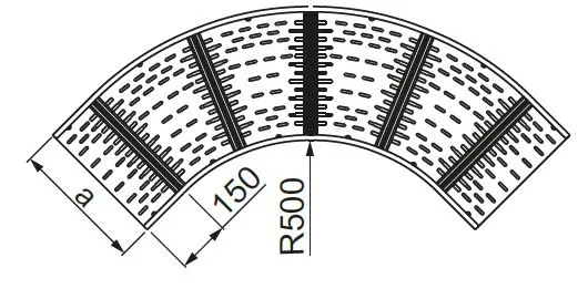 Відхилення під час прокладання кабелю. Матеріал S - Сталь, оцинкована методом Сендзіміра PN-EN 10346:2015-09 Доступні варіанти оздоблення: F - гарячеоцинкована сталь PN-EN ISO 1461:2023-02 E - нержавіюча сталь L - фарбування у стандартний колір RAL Додаткова інформація Фітинги будь-якого внутрішнього радіуса доступні на запит. Для з'єднання фітингів для кабельного лотка використовуйте прямі з'єднувачі LSSU... та набори гвинтів SGKM8x16.