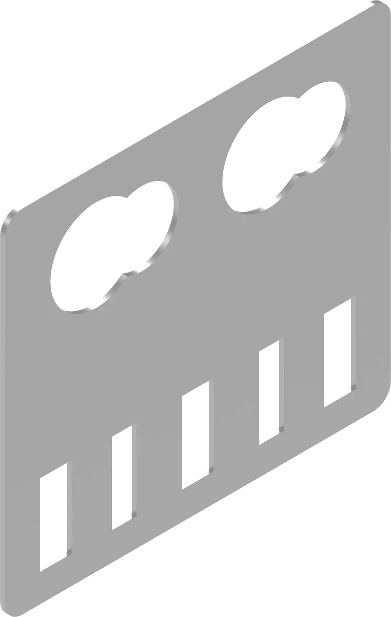 Кріплення монтажних труб діаметром Ø20 та Ø25 до кабельних лотків та драбин. Матеріал S - оцинкована сталь. Сендзимір PN-EN 10346:2015-09 На запит: FP - цинкування методом цинкування ламелей PN-EN ISO 10683:2018-11 L - фарбування у стандартній палітрі RAL E - нержавіюча сталь