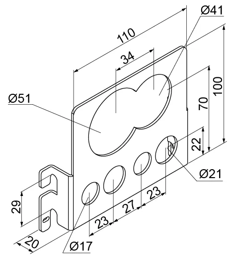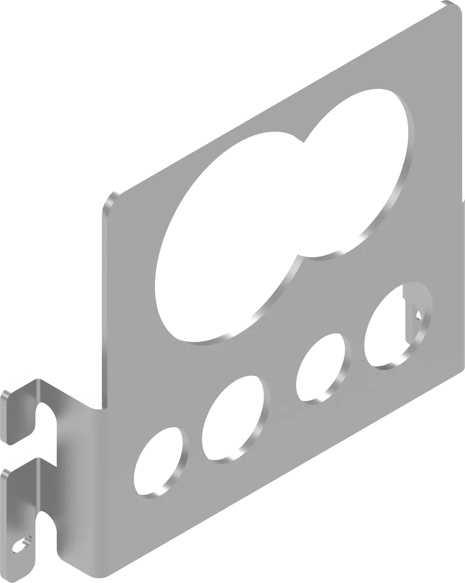 Кріплення монтажних труб діаметром Ø16, Ø20, Ø40 та Ø50 до сітчастих лотків. Матеріал S - оцинкована сталь. Сендзимір PN-EN 10346:2015-09 На запит: FP - цинкування методом цинкування ламелей PN-EN ISO 10683:2018-11 L - фарбування у стандартній палітрі RAL E - нержавіюча сталь