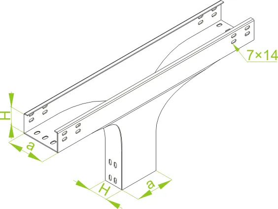 Розгалуження кабельної траси. Матеріал F - гарячеоцинкована сталь PN-EN ISO 1461:2023-02 Доступні варіанти оздоблення: E - нержавіюча сталь L - фарбування у стандартний колір RAL Додаткова інформація – для підключення фітинга до лотка використовуйте з'єднувач LCC... або комплект з'єднувачів LZC... та болти SGKFM6x12 або SGFM6x12