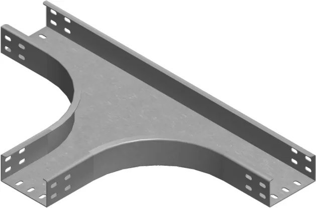 Розгалуження кабельної траси. Матеріал F - гарячеоцинкована сталь PN-EN ISO 1461:2023-02 Доступні варіанти оздоблення: E - нержавіюча сталь L - фарбування у стандартний колір RAL Додаткова інформація – для підключення фітинга до лотка використовуйте з'єднувач LCC... або комплект з'єднувачів LZC... та болти SGKFM6x12 або SGFM6x12