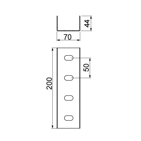 З'єднання каналів. Матеріал MC - сталь з покриттям Mangelis® Додаткова інформація – використовуйте болти SGKFM10x20 або SGFM10x20 для з'єднання профіля з роз'ємом