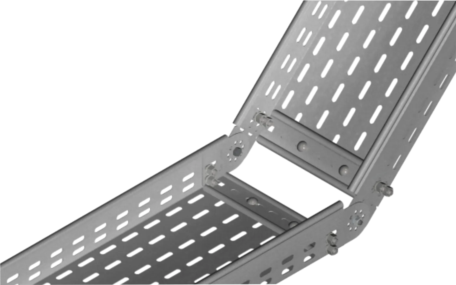 З'єднувальні кабельні траси. Матеріал S - оцинкована за методом Сендзіміра сталь PN-EN 10346:2015-09 Доступні покриття: FP - оцинкована за методом цинкових пластівців PN-EN ISO 10683:2018-11 E - нержавіюча сталь L - фарбування в стандартний колір RAL Додаткова інформація Для монтажу використовуються 4 комплекти гвинтів SGKM6x12 або SGM6x12