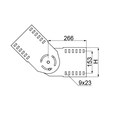 З'єднувальні елементи кабельної траси, прокладеної під різними кутами. Повний діапазон регулювання кута з механізмом блокування.