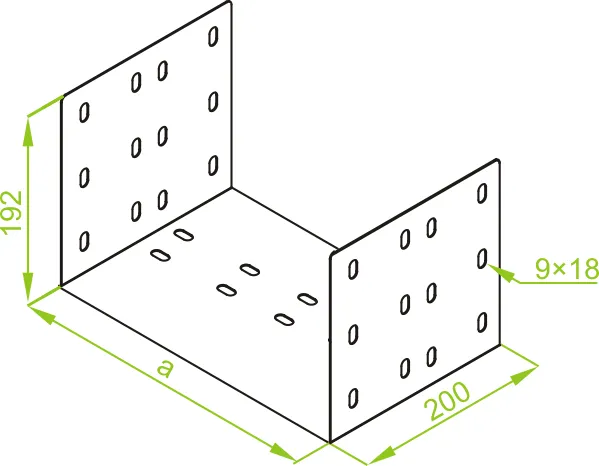 З'єднувальні елементи кабельної траси. Матеріал F - гарячеоцинкована сталь PN-EN ISO 1461:2023-02 Доступні варіанти оздоблення: E - нержавіюча сталь L - фарбування у стандартний колір RAL Додаткова інформація – для кріплення пропонуємо 24 комплекти болтів SGKFM8x14 або SGFM8x14