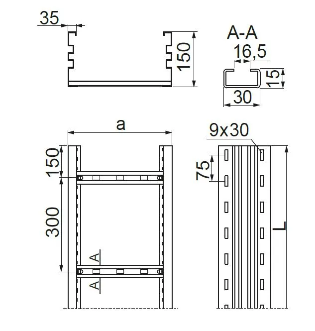 – драбина зі сходами, що підходить для монтажу кабельних затискачів UK/UKO... та UKP...