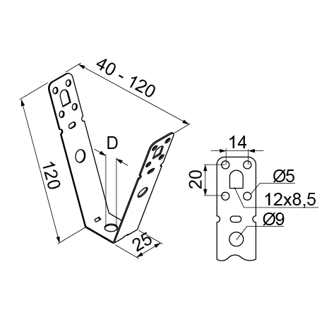Кронштейн стельовий трапецієподібний WT/WTO120M6 (730512)