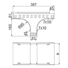 Розгалуження кабельної траси. Матеріал S - оцинкована за методом Сендзіміра сталь PN-EN 10346:2015-09 Доступні покриття: F - гаряче оцинкована сталь PN-EN ISO 1461:2023-02 E - нержавіюча сталь L - фарбування в стандартний колір RAL Додаткова інформація – безгвинтове кріплення