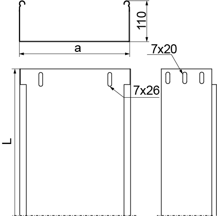 З'єднання секцій кабельного лотка між собою можливе лише за допомогою з'єднувачів