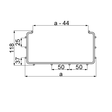 Лоток кабельний з дротяної сітки KCS400H110/3 (910340) Виробник: BAKS Артикул: KCS400H110/3 Ціна за дзвінком Кількість: Замовити Індивідуальний список бажань ОК Додати до списку бажань Додати до списку порівняння Повідомити друга Маршрутизація кабелю. Матеріал G - оцинкований Доступні варіанти оздоблення: F - гарячеоцинкована сталь PN-EN ISO 1461:2023-02 E - нержавіюча сталь L - фарбування у стандартний колір RAL Додаткова інформація – усі дроти в сітчастих лотках мають фаску, що запобігає пошкодженню кабелів Характеристики товару Назва атрибуту Значення атрибуту Системи кабельних трас Типи елементів лоток Висота борта H110 Товщина листа 0.0 мм Властивості матеріалу G - оцинкований, F - гарячеоцинкована сталь, E - нержавіюча сталь, L - фарбування в стандартний колір RAL Монтаж Для важких навантажень Вага 1м [кг] 2.81 kg Кількість у коробці [шт/м] 2 / 6 pcs. / m. Ефективна секція 39,000 Довжина L [мм] 3 000 mm Ширина a [мм] 400