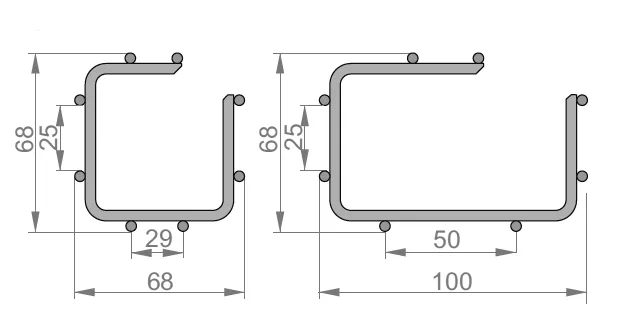 Маршрутизація кабелю. Матеріал G - оцинкований Доступні варіанти оздоблення: F - гарячеоцинкована сталь PN-EN ISO 1461:2023-02 E - нержавіюча сталь L - фарбування у стандартний колір RAL