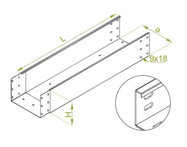 – отвори для дренажу та кріплення кабелів кожні 500 мм