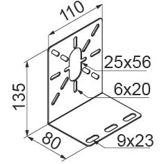 Фіксація коробок для аксесуарів до кабельних лотків і драбин, а також до канальних профілів Матеріал S - оцинкована за методом Сендзіміра сталь PN-EN 10346:2015-09 Доступні покриття: F - гарячеоцинкована сталь PN-EN ISO 1461:2023-02 E - нержавіюча сталь L - фарбування в стандартний колір RAL