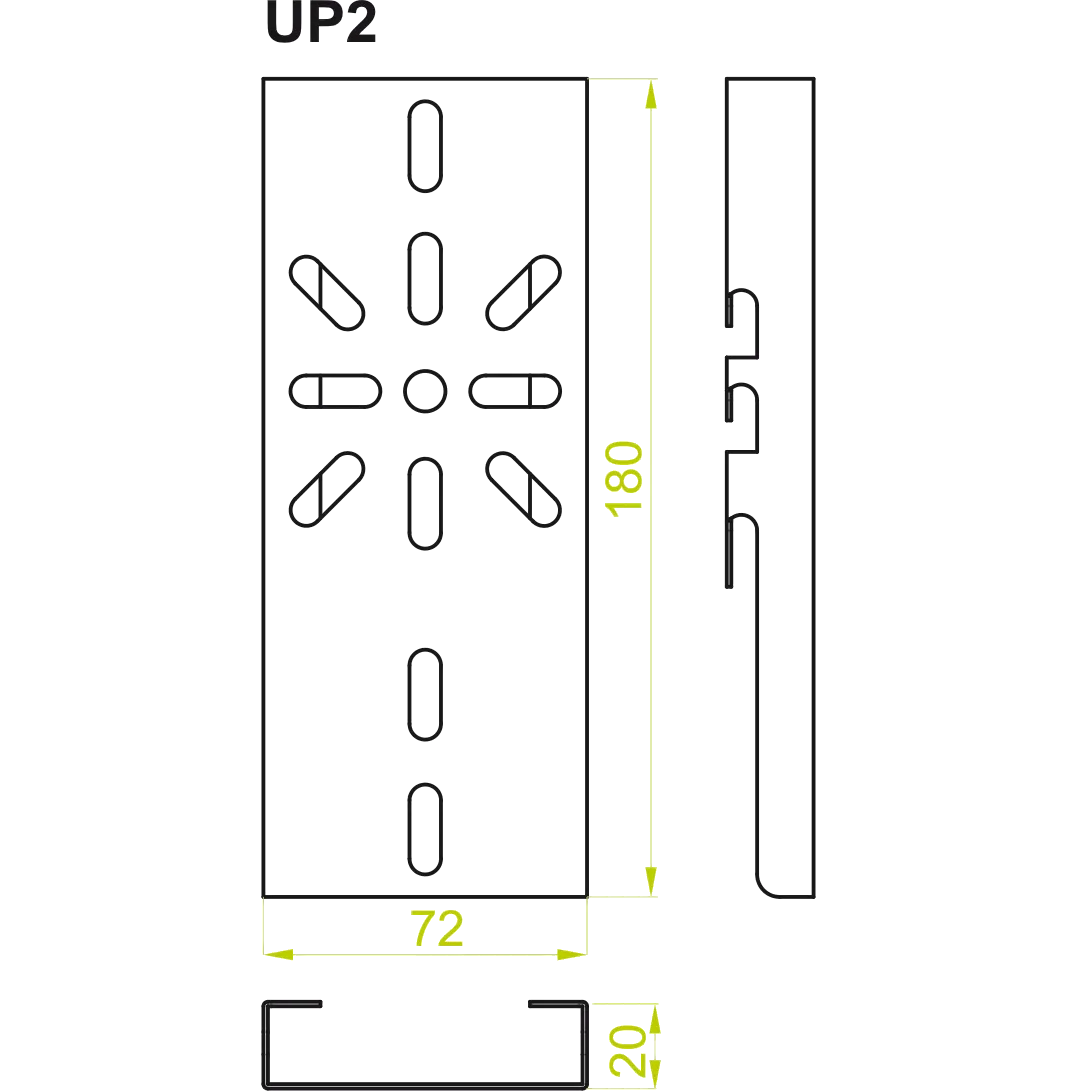 Пластина монтажна UP2 (952000) Виробник: BAKS Артикул: UP2 Ціна за дзвінком Кількість: Замовити Індивідуальний список бажань ОК Додати до списку бажань Додати до списку порівняння Повідомити друга Монтаж розподільних коробок до кабельних лотків з дротяної сітки Матеріал S - Сталь, оцинкована методом Сендзіміра PN-EN 10346:2015-09 Доступні варіанти оздоблення: F - гарячеоцинкована сталь PN-EN ISO 1461:2023-02 E - нержавіюча сталь L - фарбування у стандартний колір RAL Додаткова інформація Для складання розподільних коробок використовуйте комплект гвинтів SGNM6x12 Характеристики товару Назва атрибуту Значення атрибуту Характеристики стандартів Вогнестійкість Вогнестійкий E-90 Системи кабельних трас Типи елементів пластина Товщина листа 0.0 мм Властивості матеріалу S - оцинкована сталь за методом Сендзіміра, F - гарячеоцинкована сталь, E - нержавіюча сталь, L - фарбування в стандартний колір RAL Монтаж Швидкий монтаж Вага 1шт [кг] 0.20 Кількість [шт] 20