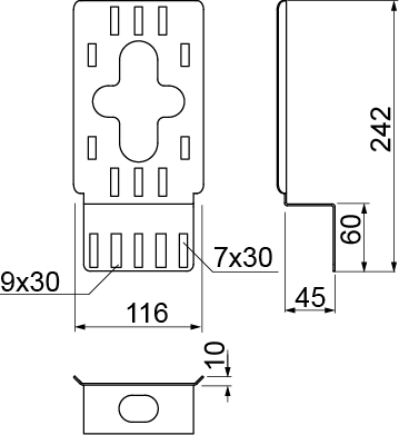 Кронштейн для кріплення коробок до кабельних лотків і драбин. Кронштейн підходить для коробок PMO1, PMO2, PMPO та PMKO.