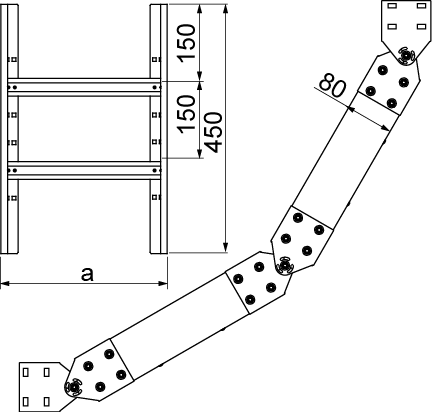Зміна напрямку кабельної траси. Матеріал S - Сталь, оцинкована методом Сендзіміра PN-EN 10346:2015-09 Доступні варіанти оздоблення: F - гарячеоцинкована сталь PN-EN ISO 1461:2023-02 E - нержавіюча сталь L - фарбування у стандартний колір RAL Додаткова інформація – для кріплення використовуйте 16 комплектів болтів SGKM8x14 або SGM8x14