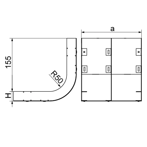Зміна напрямку кабельної траси. Матеріал S - Сталь, оцинкована методом Сендзіміра PN-EN 10346:2015-09 Доступні варіанти оздоблення: E - нержавіюча сталь Додаткова інформація – чохол в комплекті