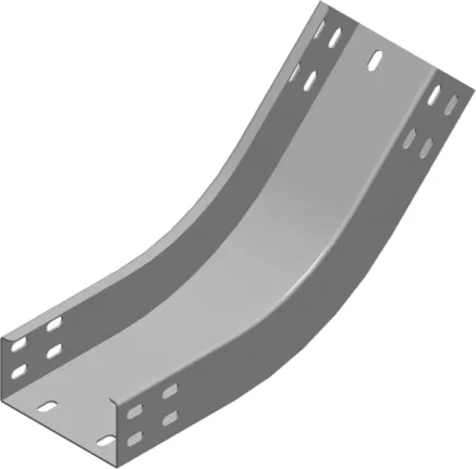 Зміна напрямку кабельної траси. Матеріал F - гарячеоцинкована сталь PN-EN ISO 1461:2023-02 Доступні варіанти оздоблення: E - нержавіюча сталь L - фарбування у стандартний колір RAL Додаткова інформація – для підключення фітинга до лотка використовуйте з'єднувач LCC... або комплект з'єднувачів LZC... та болти SGKFM6x12 або SGFM6x12